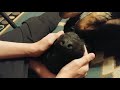 He doesn’t love going to the vet, and can get fearful and nippy when being poked and prodded there. At his foster home he loves to play with their dogs of all sizes and snuggle with humans. He can be startled by loud noises and sudden movement (he has not bitten), so kids over 12 would be best, or well-trained younger children who are taught how to behave around dogs.